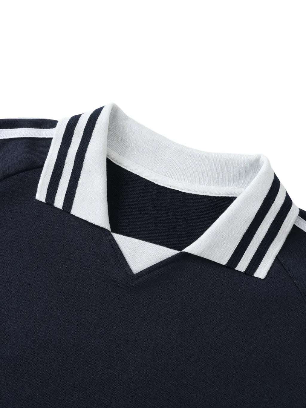Featuring bold contrast stripes along the collar and sleeves, this piece channels a classic preppy aesthetic with a modern twist. Crafted from 100% heavyweight cotton (380gsm), it offers a durable yet breathable feel that keeps you comfortable all day long. The fabric’s soft touch and moderate thickness make it ideal for layering or wearing on its own, from chilly mornings to laid-back evenings.